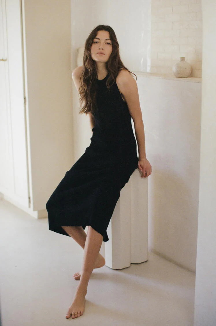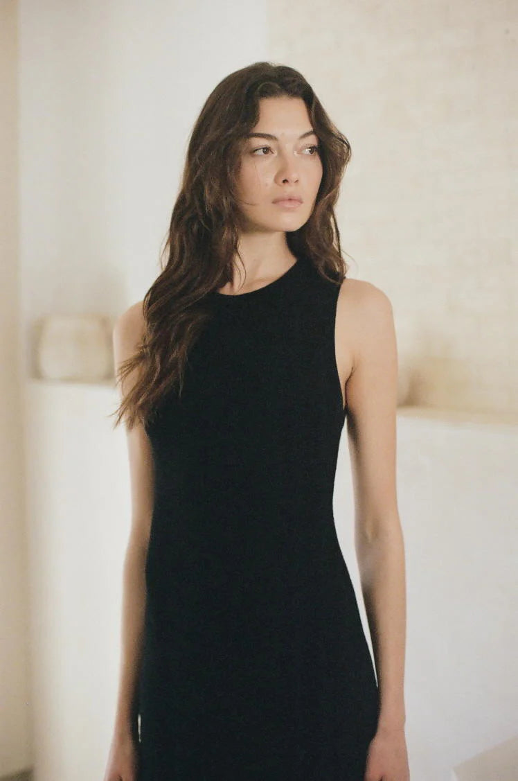 Expertly crafted in a blend of viscose, polyester, and nylon, the Ren Elosie Maxi Sweater Dress is a luxurious addition to any wardrobe. Its ribbed round neck and sleeveless design add a modern touch, while the back slit provides ease of movement. Perfect for layering or wearing on its own, this knit sweater dress offers both comfort and style.