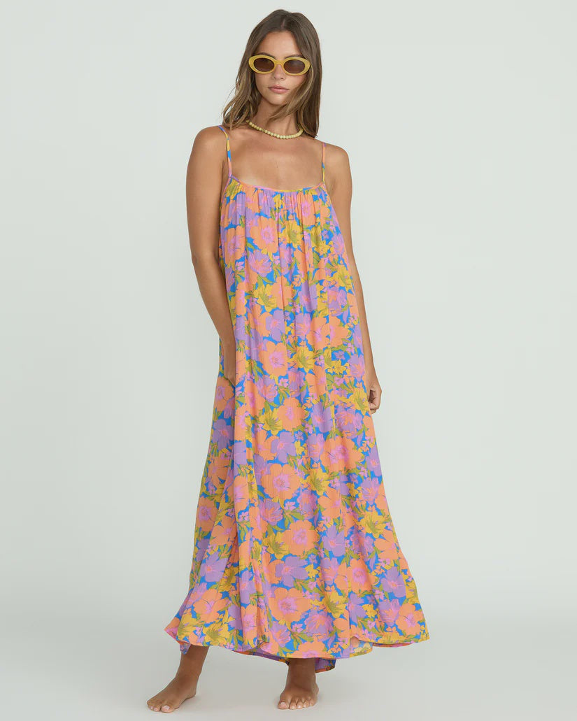 Our Billabong breezy viscose midi dress boasts crinkled texture and floaty fit-perfect for slipping over swimsuits or wearing casually.