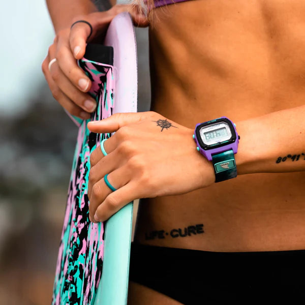 Reflection is a collab with world champion skim boarder and video artist, Amber Torrealba. Amber is dedicated and passionate about the things she loves. She lives life at the next level, which is reflected in this new design. Reflections features a unique silver mirror-finished lens, and a purple, teal wave pattern strap. Built for performance, this Shark Clip is made to go with you on all your adventures in and out of the water and is backed by a Limited Lifetime Warranty.