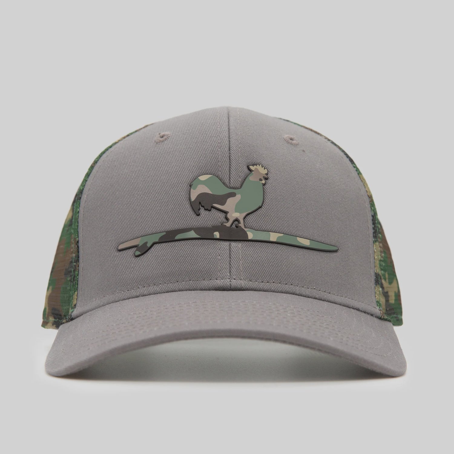 The Surfing Rooster Camo Snapback Hat suits scouts, field operators, and outdoor enthusiasts needing reliable headwear. It conceals, disguises, mimics, and disrupts with organic camouflage. This full-size adjustable snapback features a structured front and standard crown height to maintain form. A quick-break-in flexible brim retains shape with minimal effort. The snapback closure offers a precise fit. Durable, high-quality back mesh endures heat, sweat, and rugged use. A heat-pressed polypress logo withstands harsh conditions. Its distinctive camo pattern balances concealment and modern style. It reflects Agri-Coastal Design Division craftsmanship.