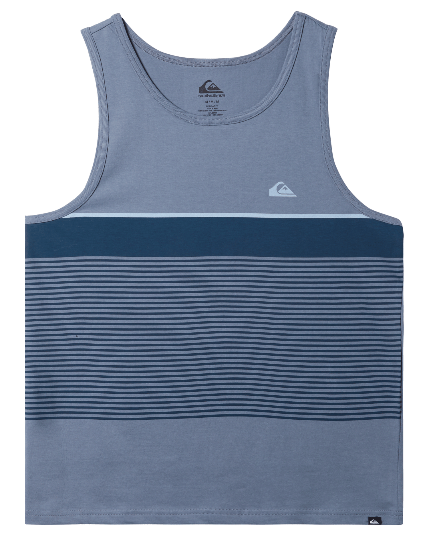 Stay beach-ready in the Tijuana Tank Top from Quiksilver. This regular-fit tank is crafted from soft, comfy cotton jersey fabric with a scoop neck and striped graphic. Perfect for beach days, weekend fun, or lounging at home, this versatile tank is a wardrobe essential for the modern man. Featured here in the Beach Glass colorway.